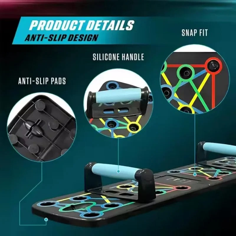Level up your workouts anywhere with the Folding Push-Up Board — a compact, color-coded system that builds strength, defines muscles, and keeps your training on track. Fold, grip, and push your way to a stronger you — no gym required